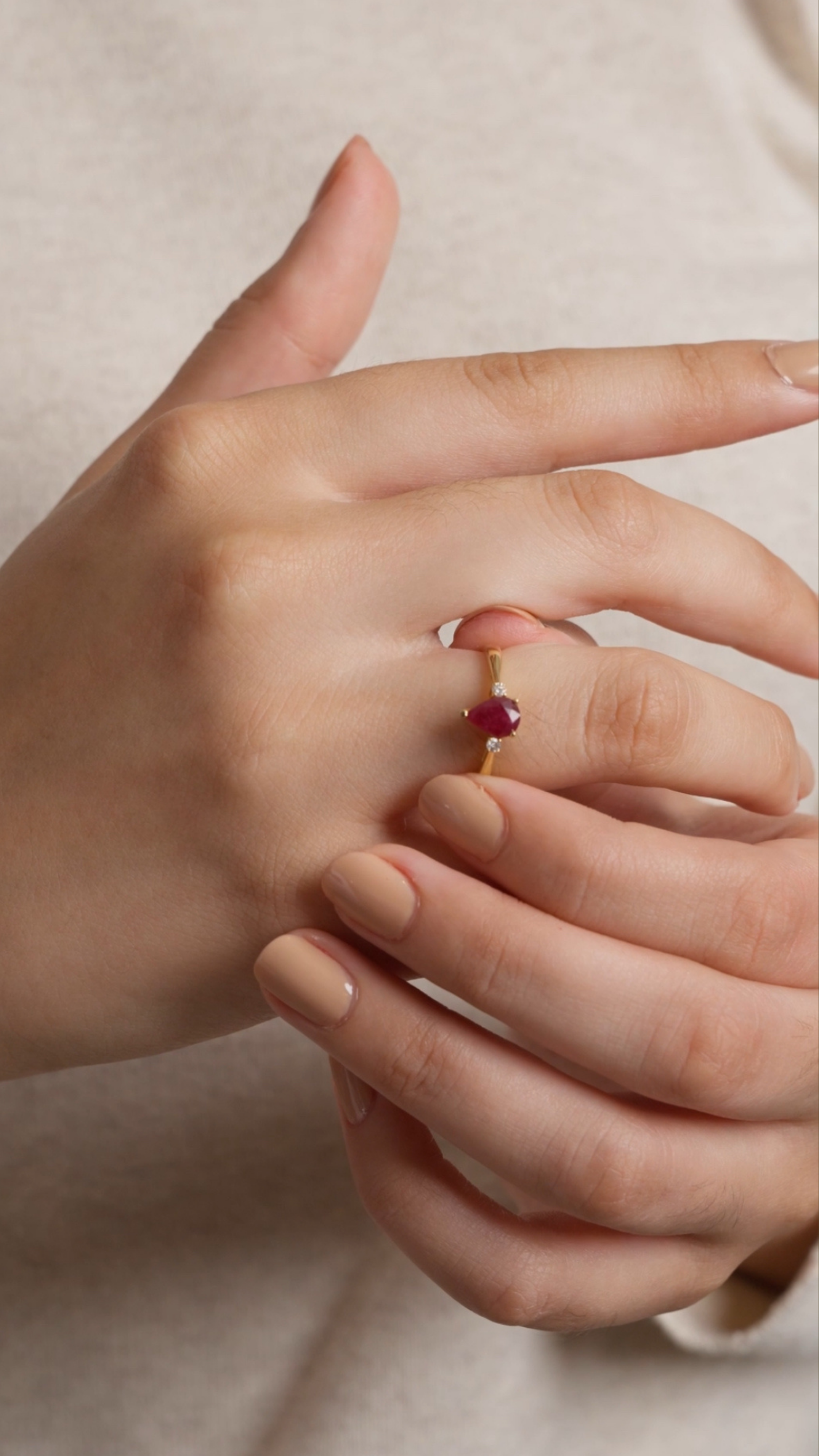 Anillo Rubí Gota Oro Amarillo 18k con Brillantes