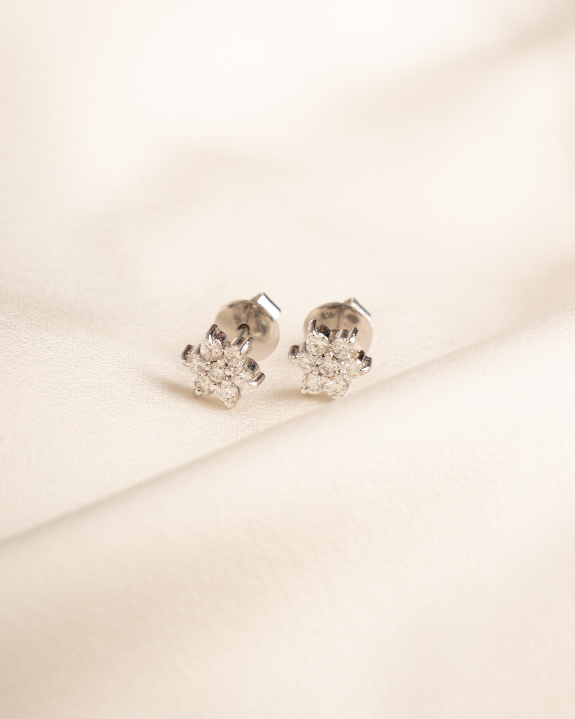 Aretes Flor Oro Blanco 18K con Brillantes 0.42 cts