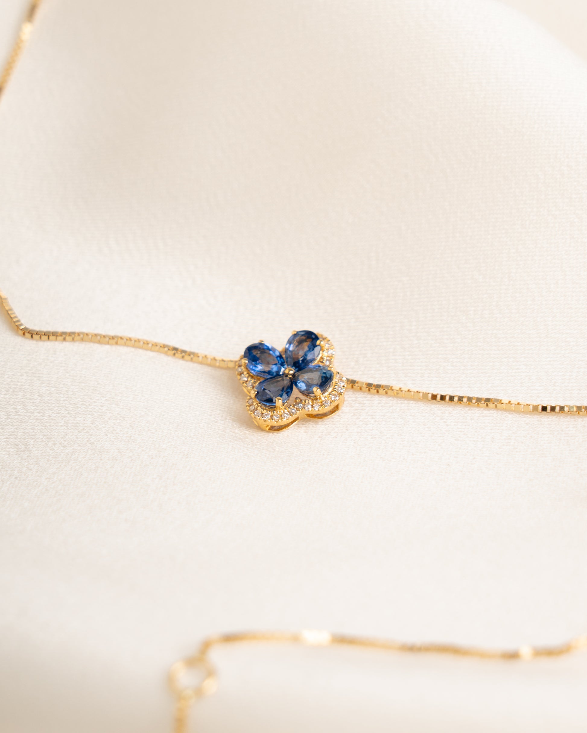 Dije Flor Oro 18K con Zafiros y Brillantes + Cadena Oro 18K 45cm